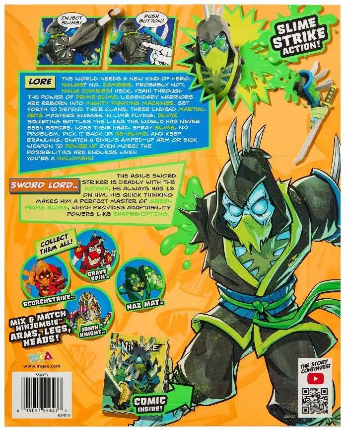 - Customize your Ninjombie+Sword+Lord action figure by filling with slime and pressing to create ooze from limbs.