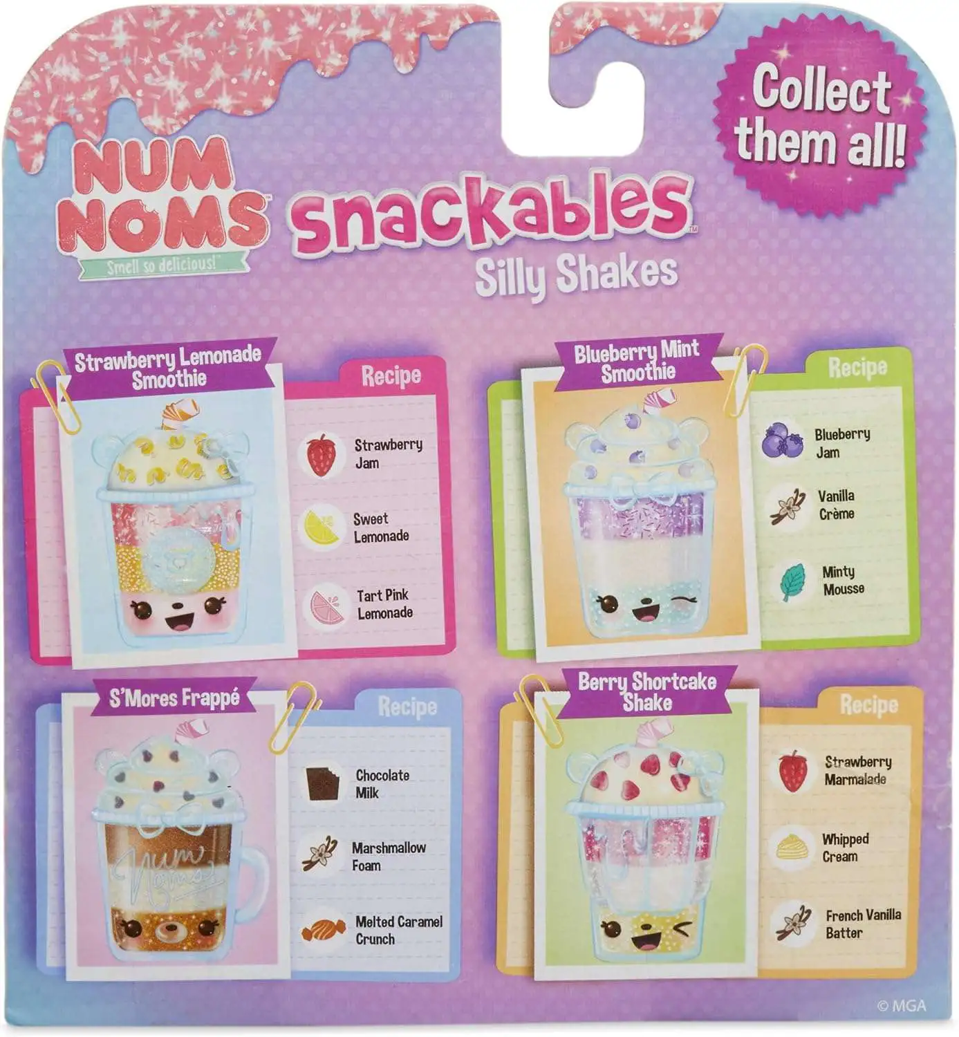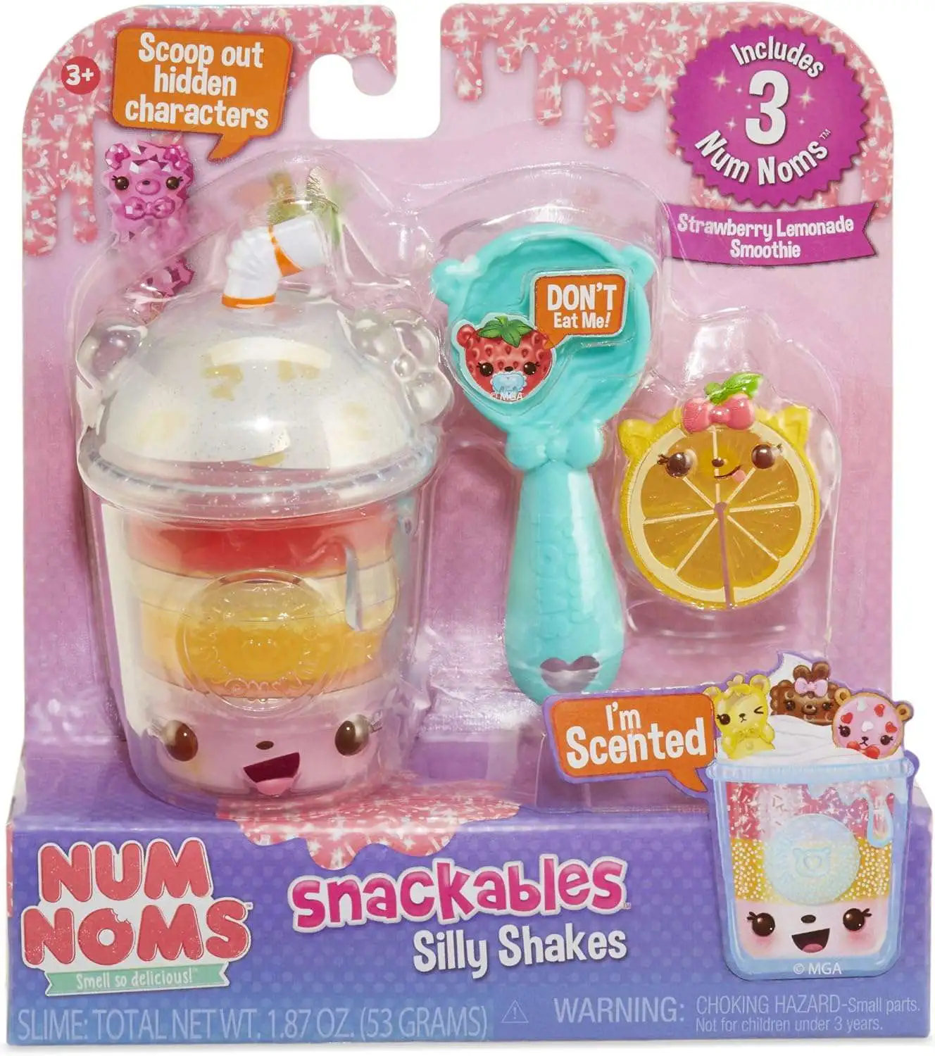 - Num Noms Silly Shakes include scented slime & 3 Snackables characters