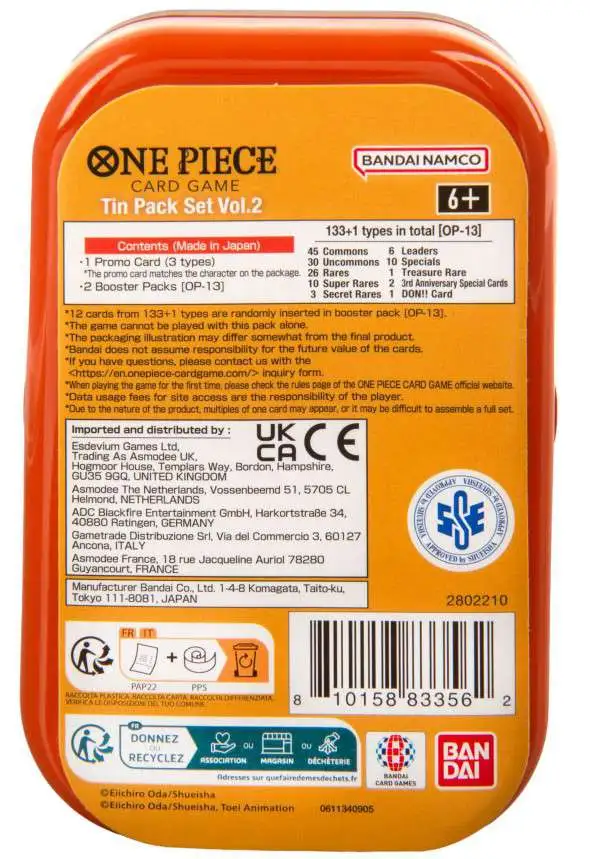 One Piece Trading Card Game Volume 2 Tin Pack Set TS-02 [ENGLISH, RANDOM Tin Design, 1 DON Card, 2x OP-13 Booster Packs] has successfully been added to your cart!