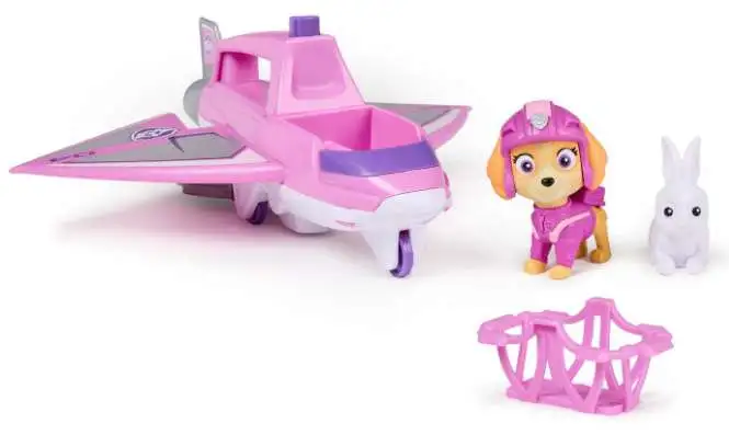 - RESCUE JET TOY: Clip Skye into position in the cockpit before taking off on your mission, then push the button to extend the claw & retrieve the bunny toy figure with a rescue basket to save the day!