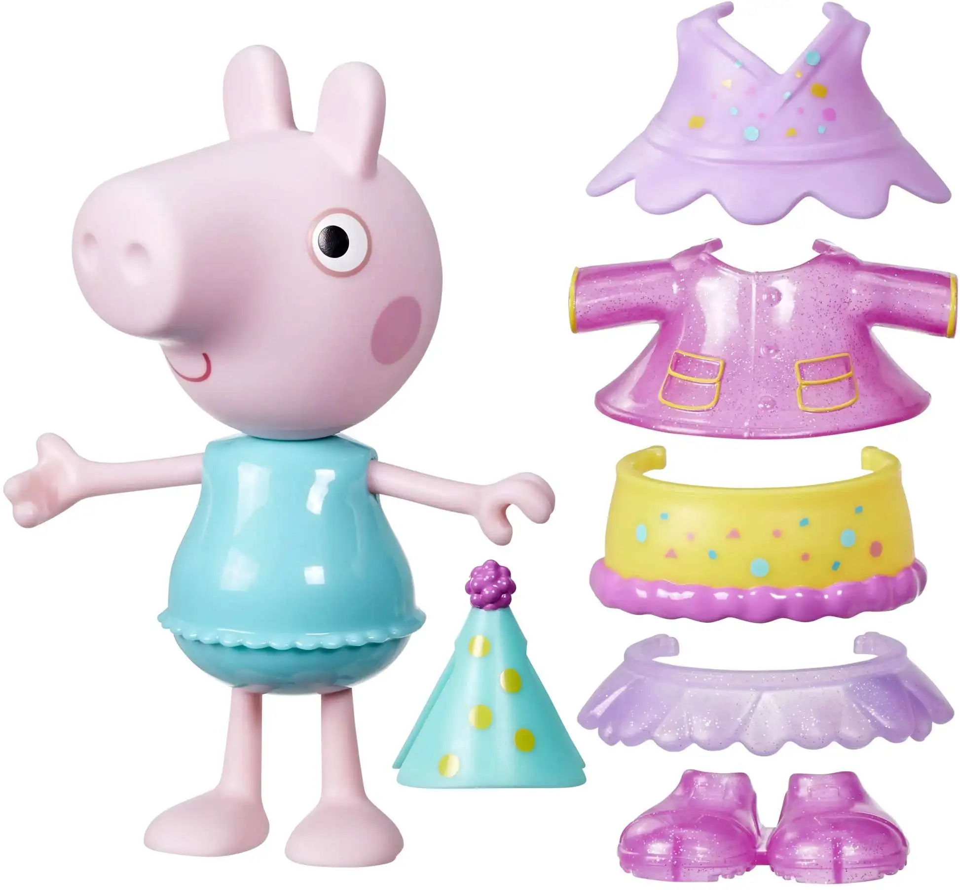 - Little kids who love fashion dolls will love this adorable dress-up Peppa Pig toy! She comes with 6 confetti and glitter fashion accessories to get ready for all kinds of party occasions
