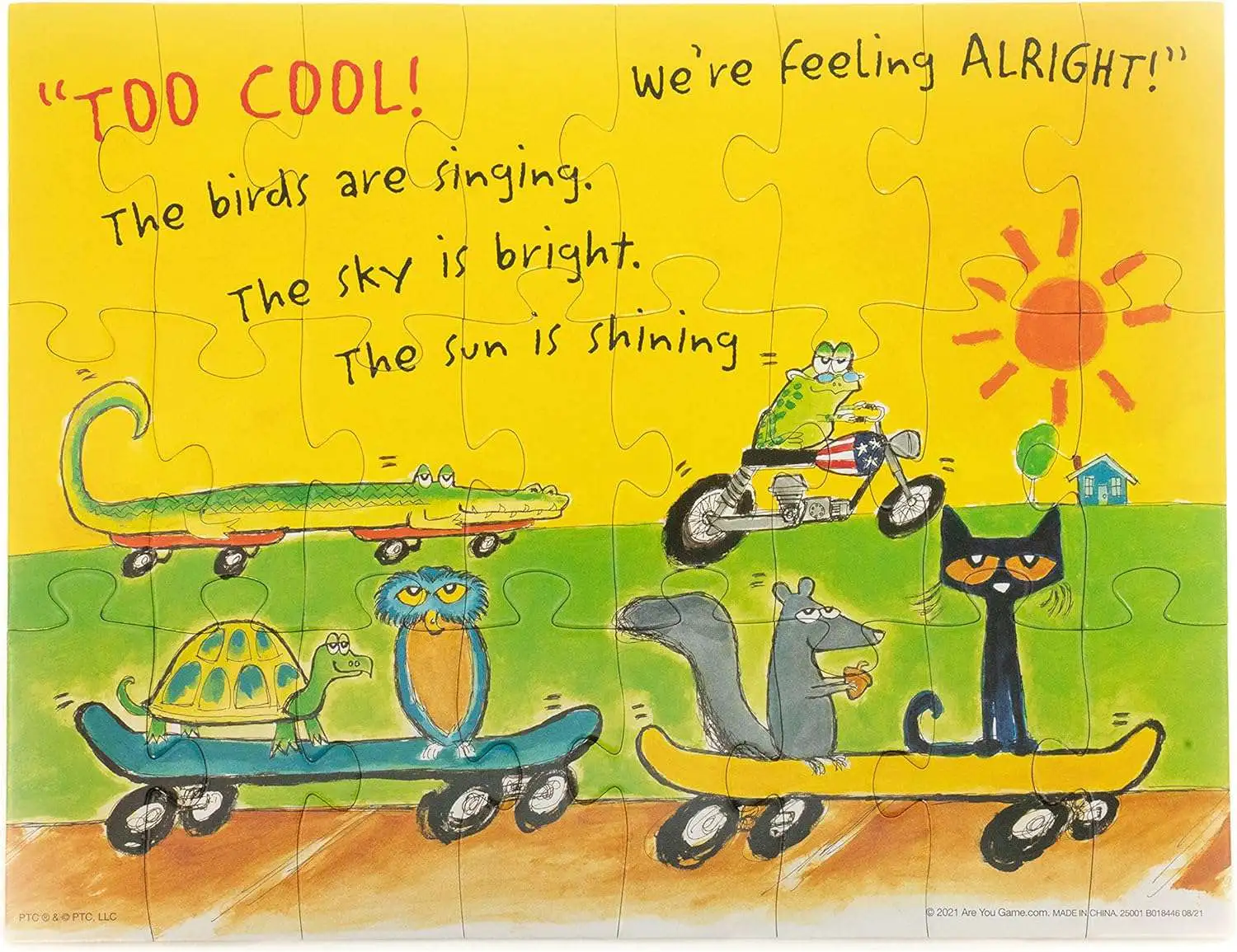 - Includes a 24-piece black-and-white puzzle featuring Pete the Cat and the New Guy, encouraging creativity through coloring.
