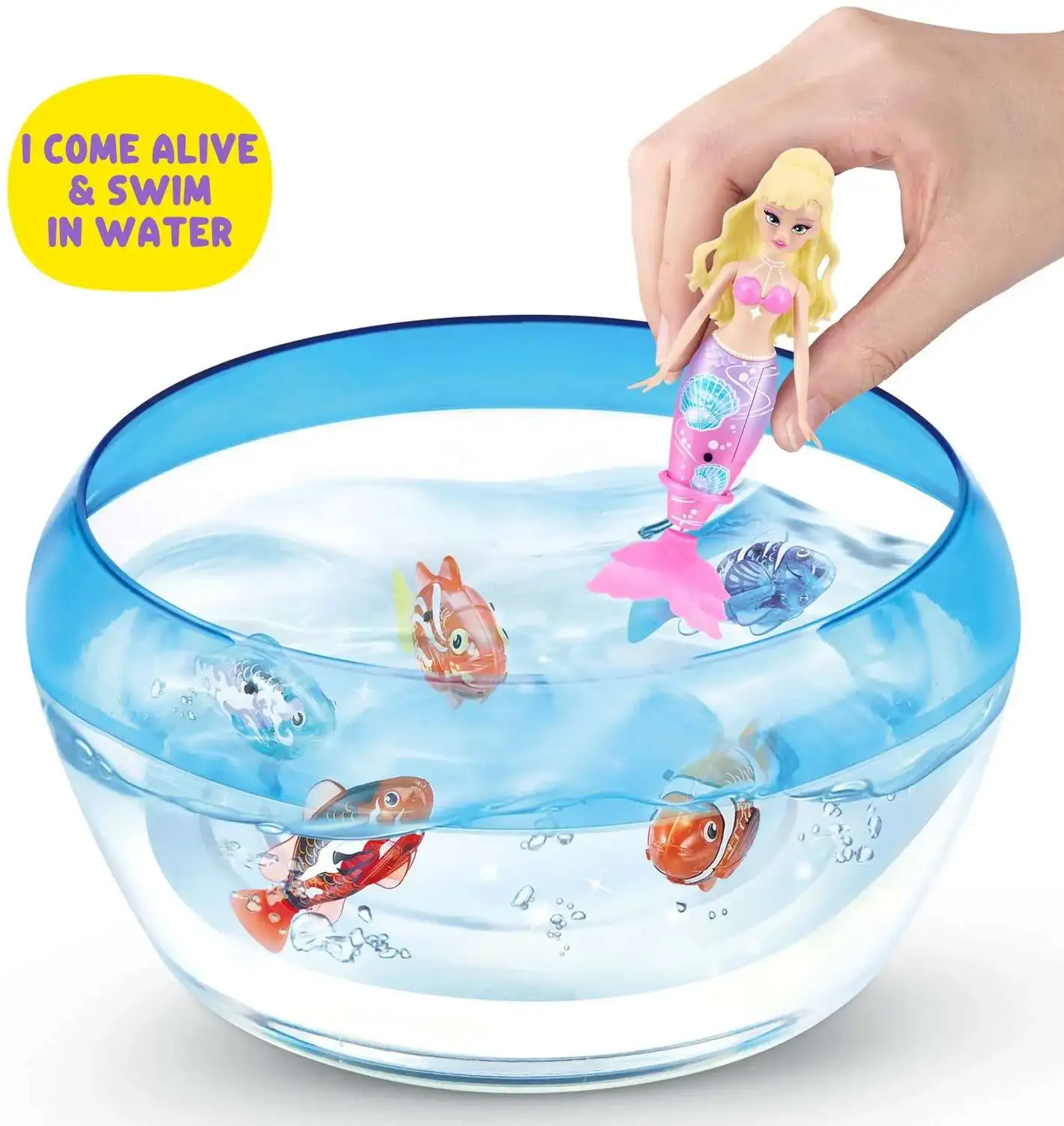 - Water-activated swimming mermaid that comes alive with lifelike motion when immersed in water.
