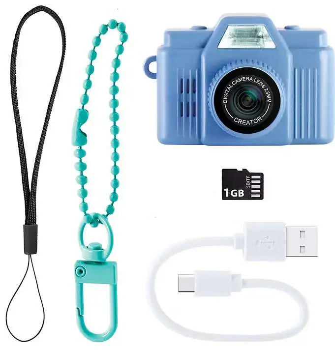 - Compact, retro-style mini camera perfect for kids, easily clipping onto backpacks for on-the-go creativity.