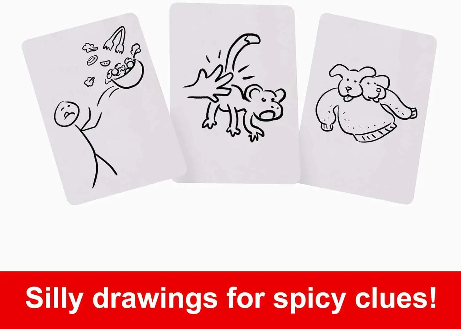 - Choose which clue to draw and make it as goofy or dirty as desired. If the team guesses, move ahead on the gameboard!