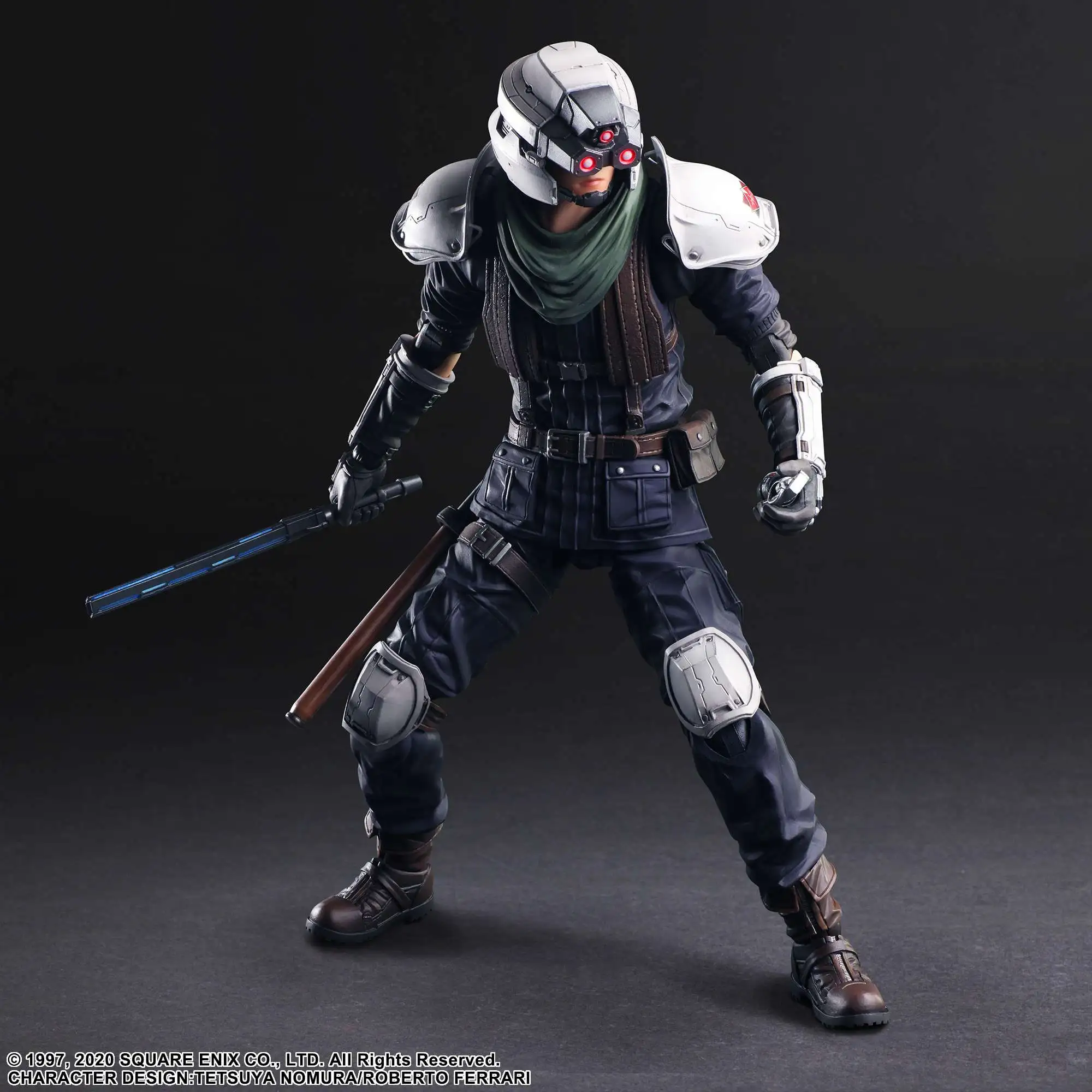Each detail; from the rather eerie look enhanced by the Shinra regulation three-scope helmet, to the texture on their jacket, scarf, and armor on their shoulders and knees; represents the finely rendered security officer uniform depicted throughout the series.