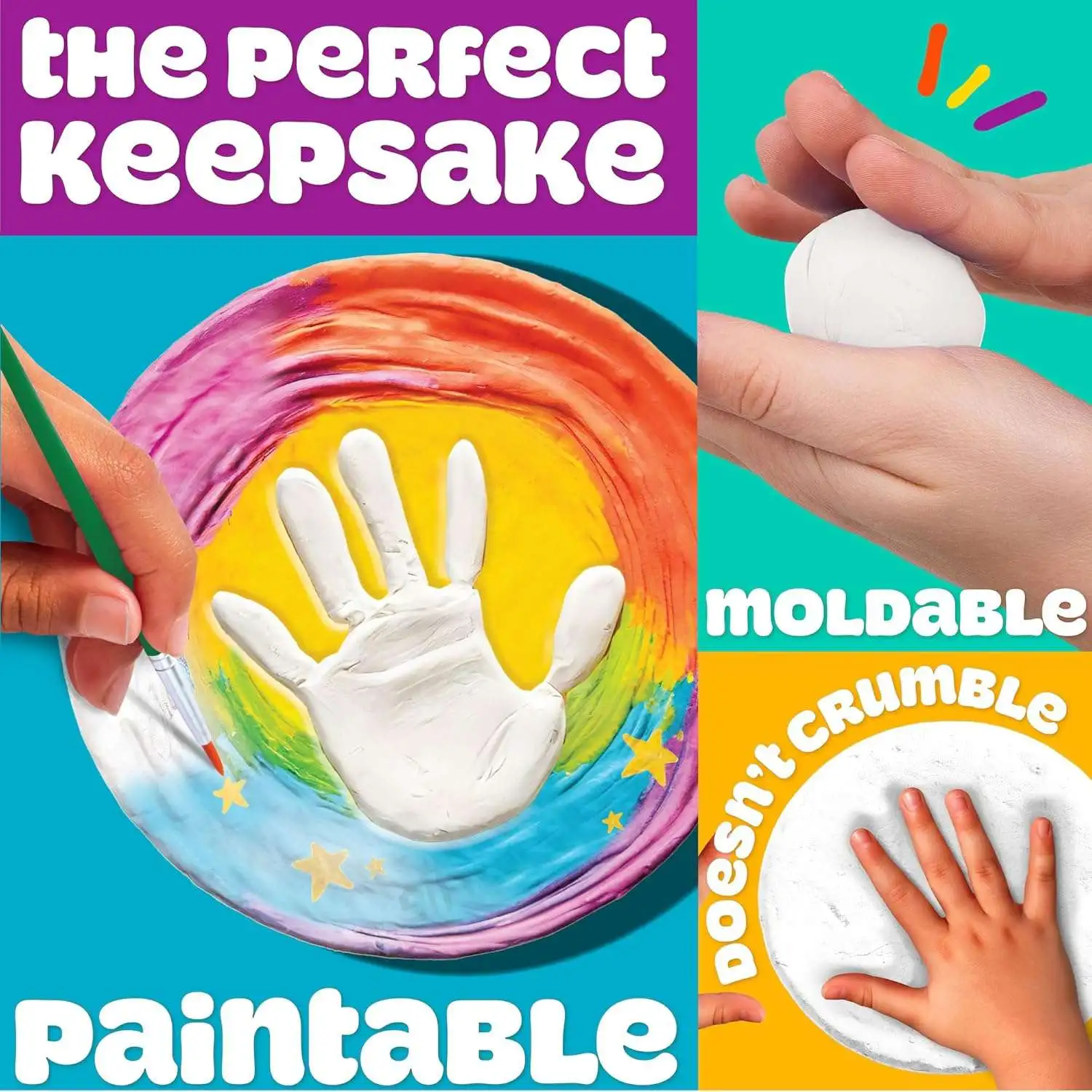 - LIGHTWEIGHT & EASY TO SHAPE: The super-soft and stretchy air-dry clay lets hands big and small create with ease - use the circular mold as the canvas for handprints, fingerprints, or any cherished memento you can imagine.