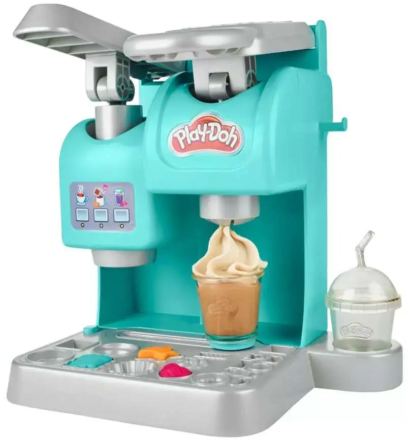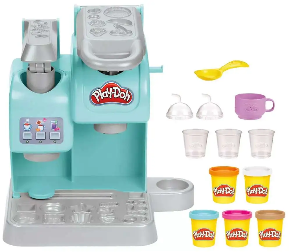 - 5 DIFFERENT COLORS: 2-ounce cans of classic Play-Doh modeling compound come with the toy coffee maker in 5 different colors: blue, white, pink, orange, and brown (contains wheat)