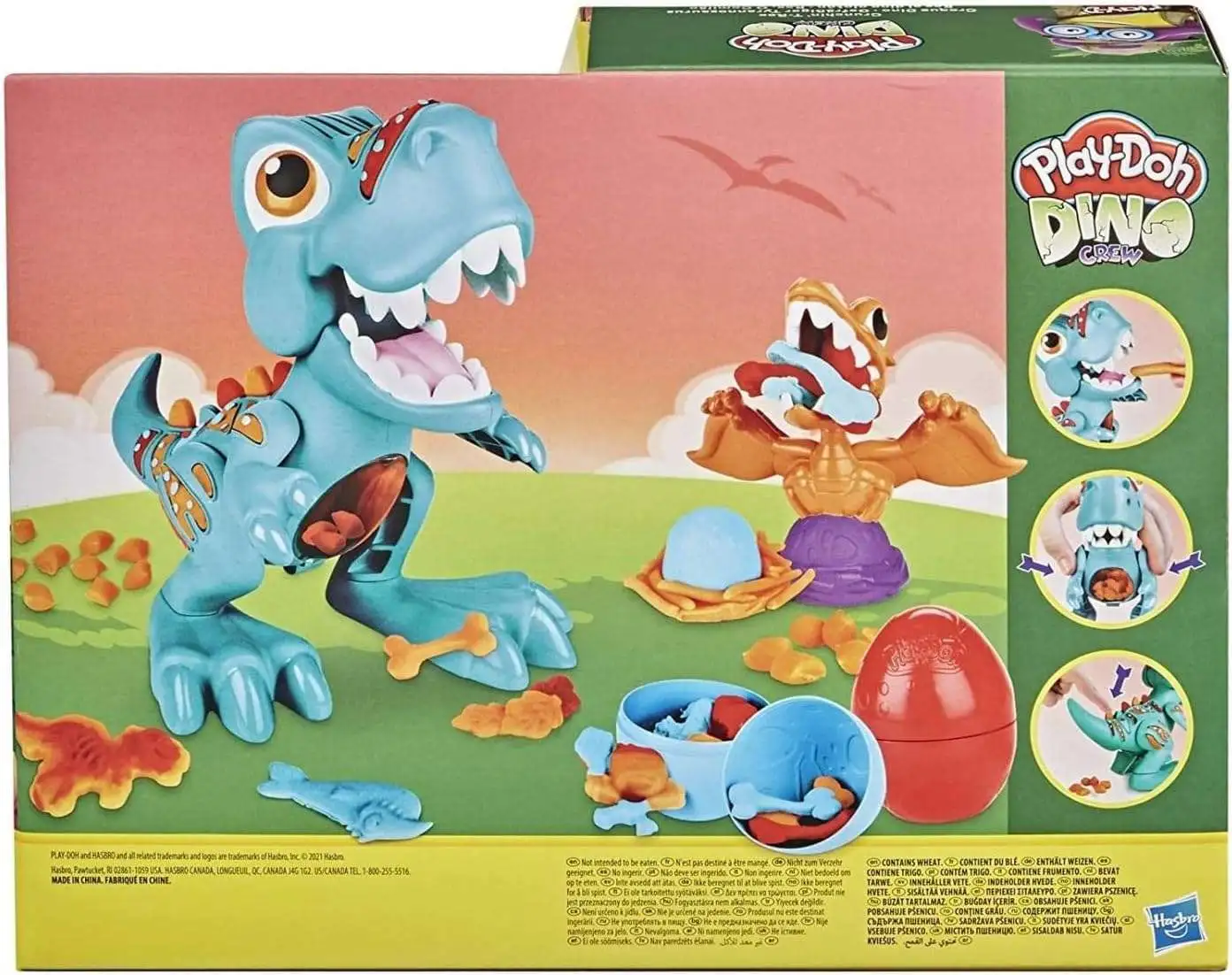 - JAW-CHOMPING ACTION: Crunchin' T-Rex is ready to chomp! Put some Play-Doh compound in the Tyrannosaurus Rex toy's mouth to make him bite it and hear the sound effects