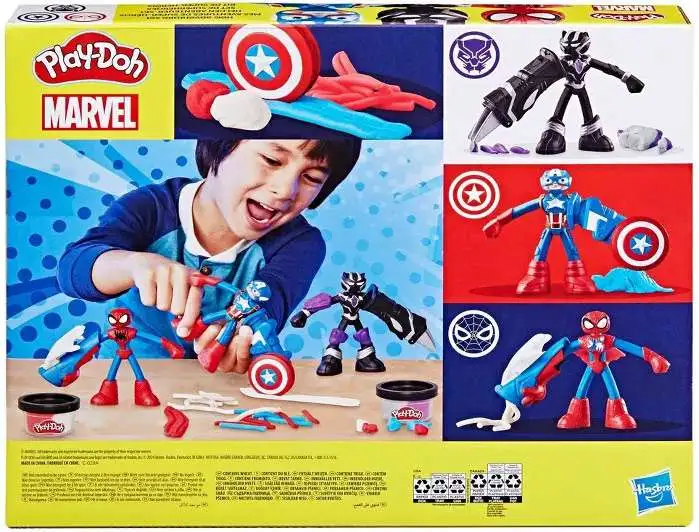 - Capture kids' imaginations with bendy 4-inch (10.16 cm) Captain America, Black Panther, and Spider-Man action figures and Play-Doh accessories that put play power in kids hands