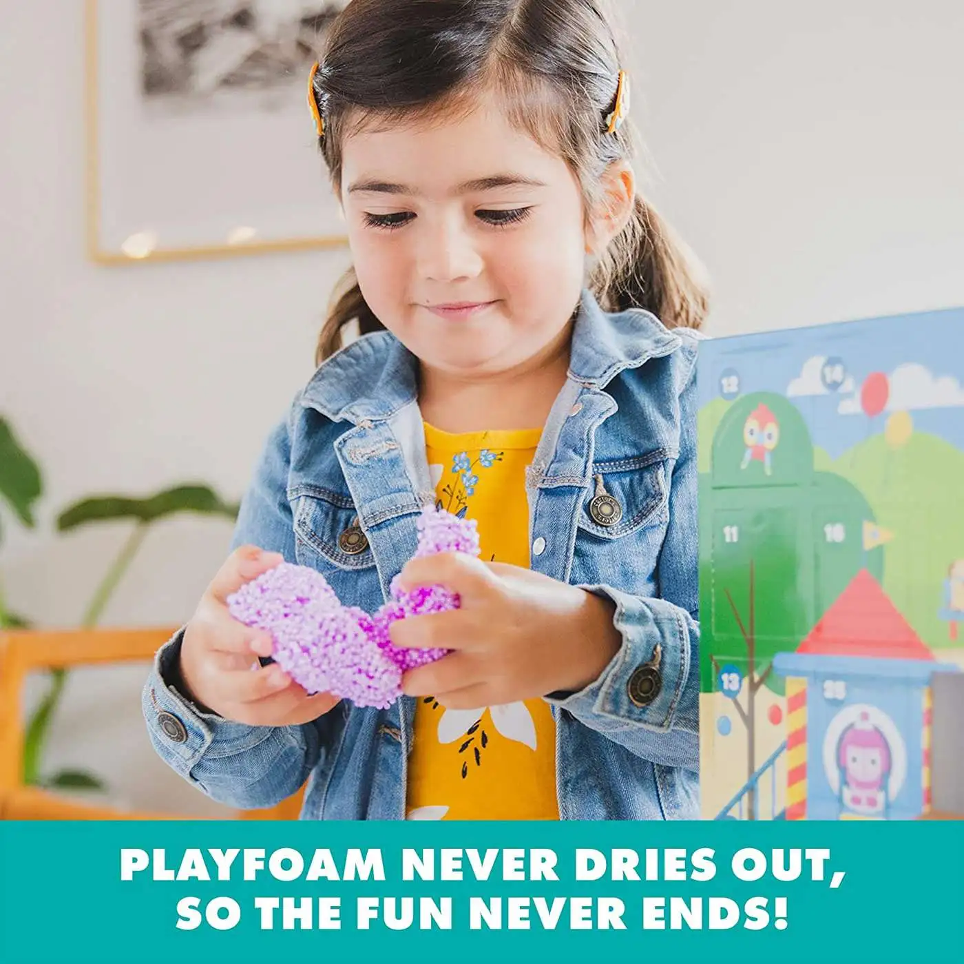 - 25 DAYS OF SQUISHY, SQUASHY SENSORY FUN: Pop one door open every day to reveal a brick of squishy, squashy Playfoam or a Pet Party Pal. Use the Playfoam to sculpt a pet playland perfect for pretend play fun with the Pals figurines. INCLUDES: 25-Day Advent Calendar with perforated doors, 12 Playfoam Pet Party Pals, and 13 bricks of Playfoam