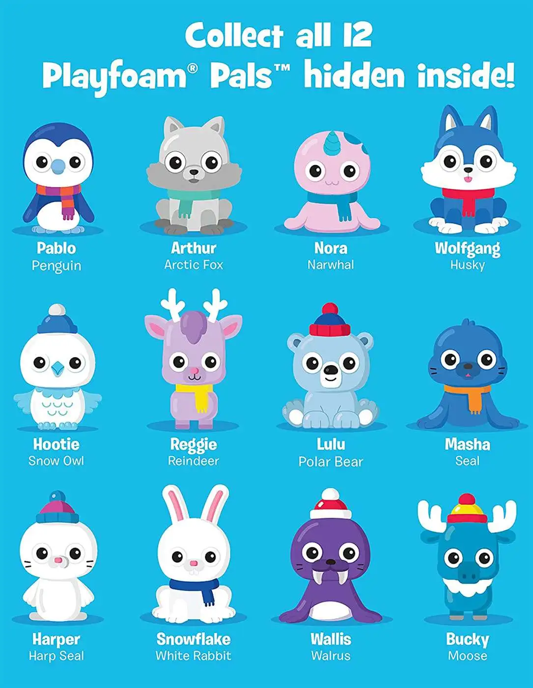 - 25 DAYS OF SQUISHY, SQUASHY SENSORY FUN: Pop one door open every day to reveal a brick of squishy, squashy Playfoam or a Snowy Friends Pal. Use the Playfoam to sculpt a winter wonderland scene perfect for pretend play fun with the Pals figurines!