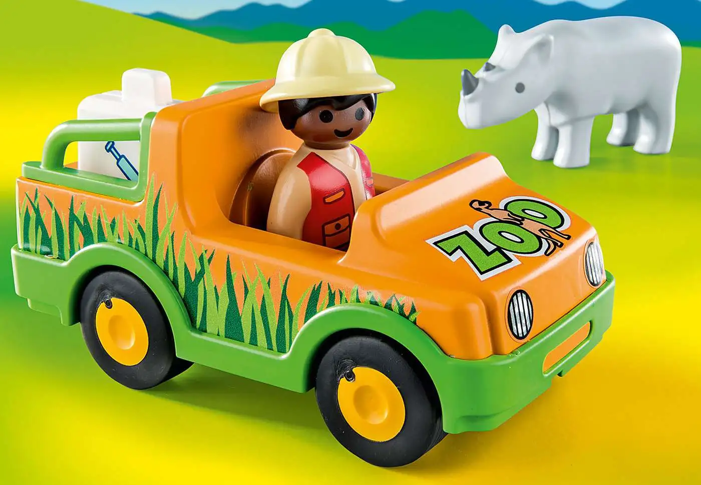 Playmobil 1.2.3 Zoo Vehicle with Rhinoceros Set #70182