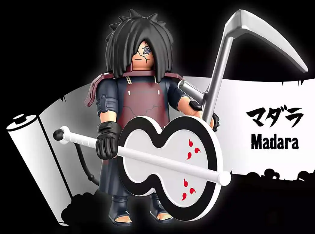 The successful collaboration between PLAYMOBIL and NARUTO goes into the second round. All anime fans can look forward to new characters from the exciting NARUTO universe. The creative figures inspire with lots of details and cool accessories from the well-known hit series and are the eye-catcher in every fan article showcase. The PLAYMOBIL set includes NARUTO SHIPPUDEN character Madara with shoulder-length black hair covering his right eye. In his hand he holds a scythe as well as a gunbai fan.