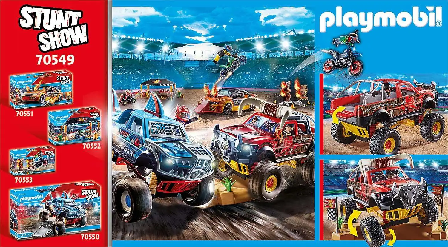 - For even more fun, combine this set with the rest of the PLAYMOBIL Stunt Show theme world (#70549-70555 - sold separately)!