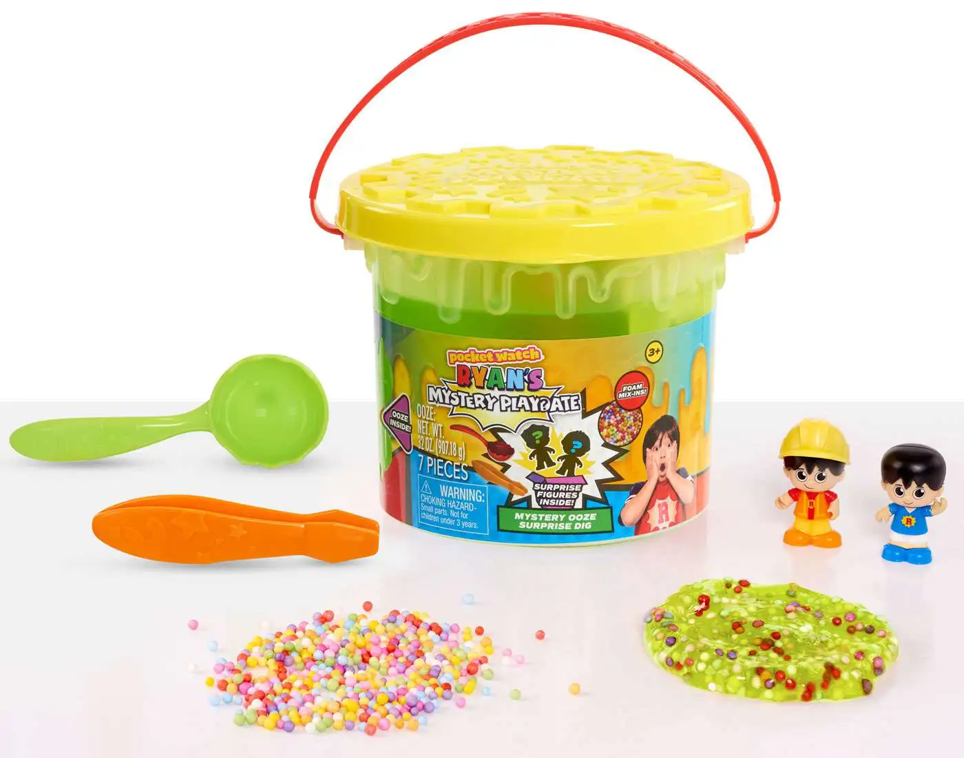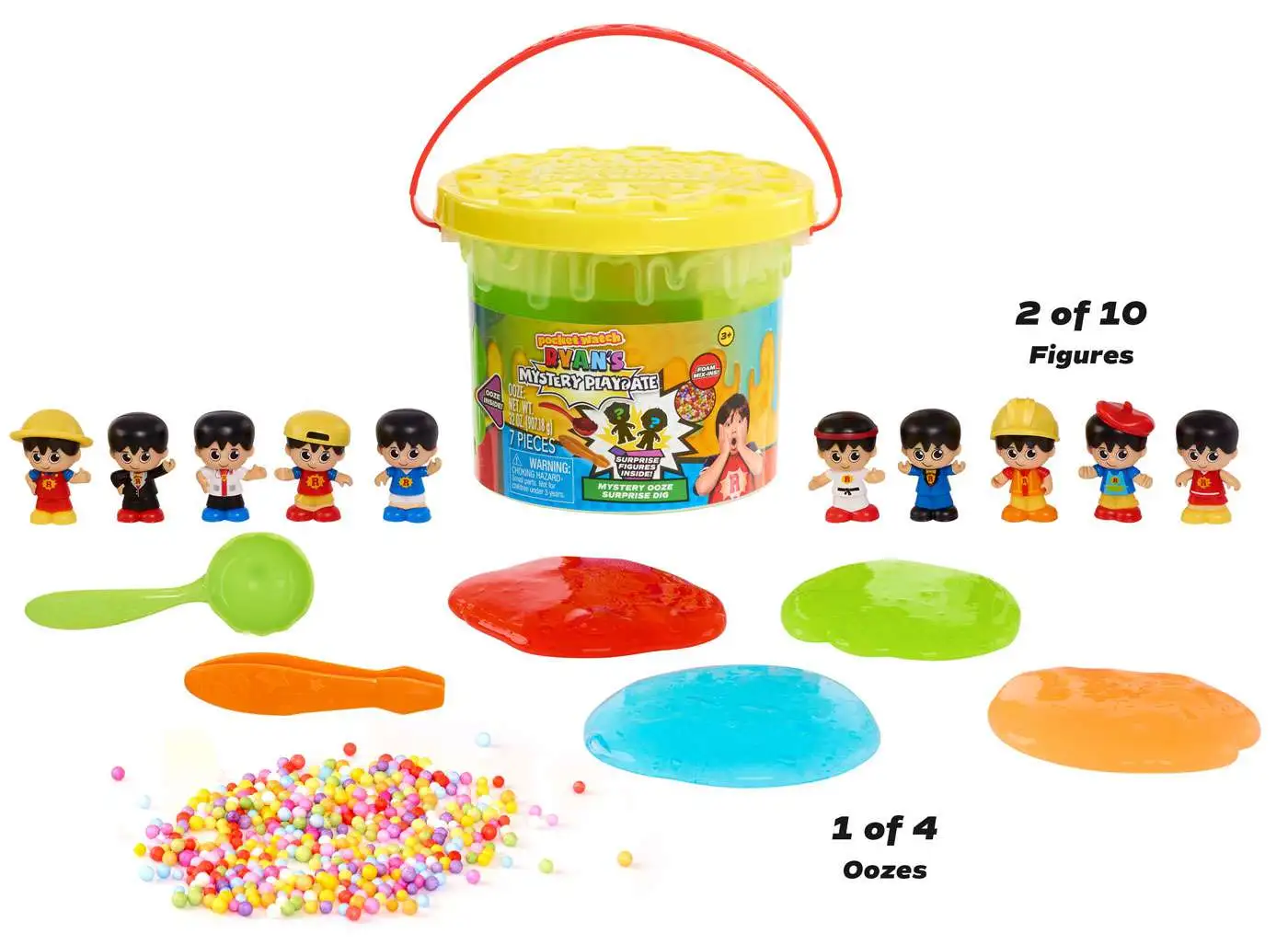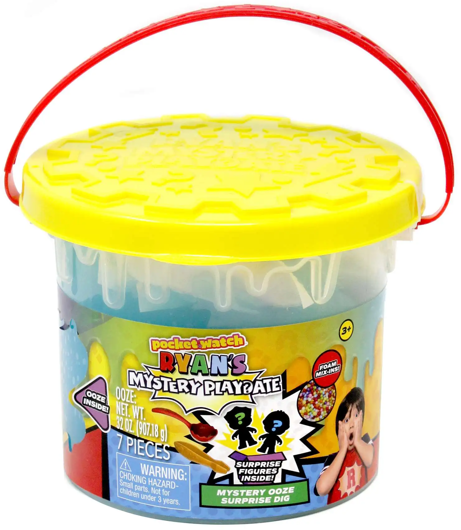 - The Ryan's Mystery Playdate Ooze Surprise Dig includes 32 o.z. of ooey, gooey ooze, fun foam beads, one pair of tweezers, one scooper, and two surprise Ryan figs.