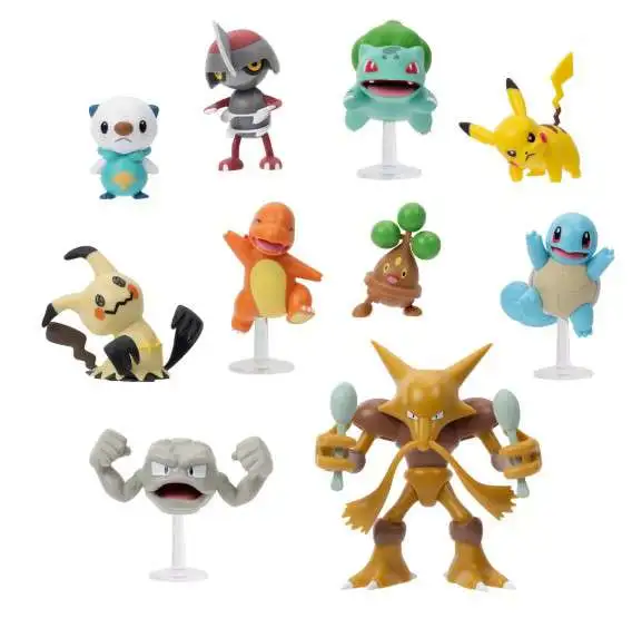 Pokemon Battle Ready Pikachu, Charmander, Squirtle, Bulbasaur, Oshawott, Mimikyu, Pawniard, Bonsly, Geodude & Alakazam Exclusive 3-Inch Multi Figure 10-Pack