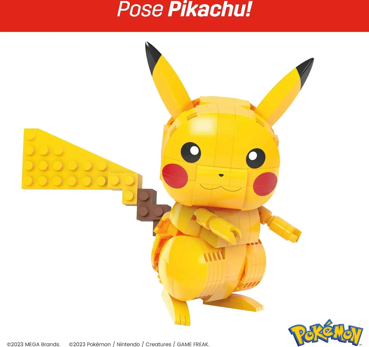 - 529-piece buildable and poseable Pokemon figure set featuring Pikachu, Charmander, and Meowth