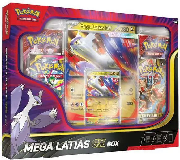 Mega Evolution takes the power of the Legendary Pokémon Latias past its limit! With awesome speed, it surges through the sky with draconic might. Now you can team up with Mega Latias ex as a playable foil promo card, plus an oversize lenticular card with amazing artwork. You also get four booster packs with even more Pokémon inside!