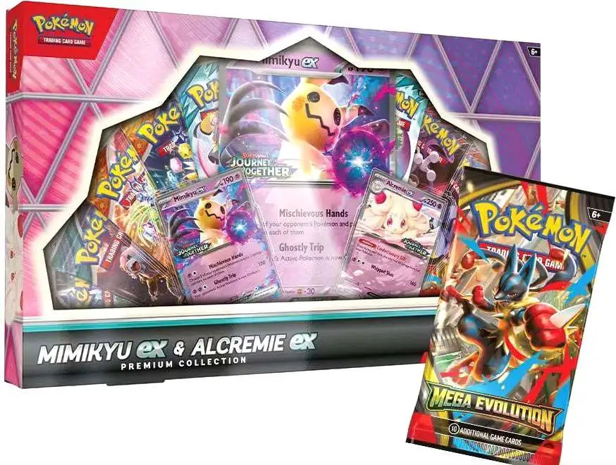 - Comes with 2 exclusive promo cards showcasing Mimikyu ex and Alcremie ex, plus an oversize promo card.