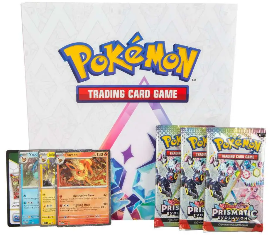 Eevees three Evolutions originally discovered in the Kanto region are beloved by Pokémon Trainers across the land, and now you can add them to your own collection as foil promo cards! Youll also get a poster featuring the special Scarlet & VioletPrismatic Evolutions expansion, along with three booster packs to open. The only question is which cards youll find inside them!