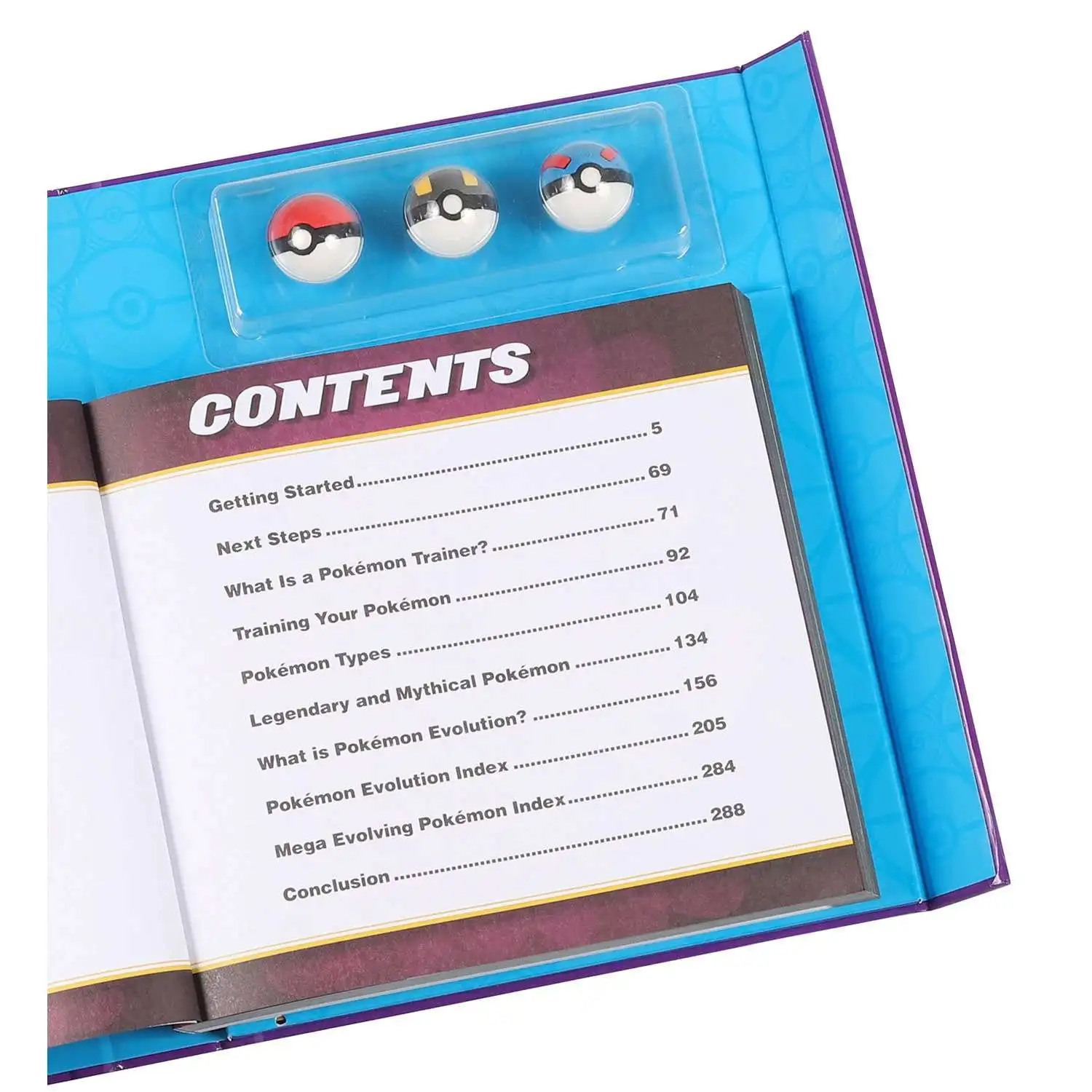Contains the basics to get started being a Pokemon trainer, including chapters on Getting Started, What Is a Pokemon Trainer?, Training Your Pokemon, Pokemon Types, Legendary and Mythical Pokemon, What is Pokemon evolution?, Pokemon Evolution Index, Mega Evolving Pokemon Index.