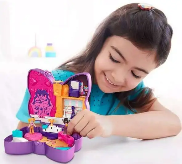 - The Polly Pocket Sparkle Stage Bow compact has a beautiful bow design with two-way sequins and comes with micro Polly and friend dolls