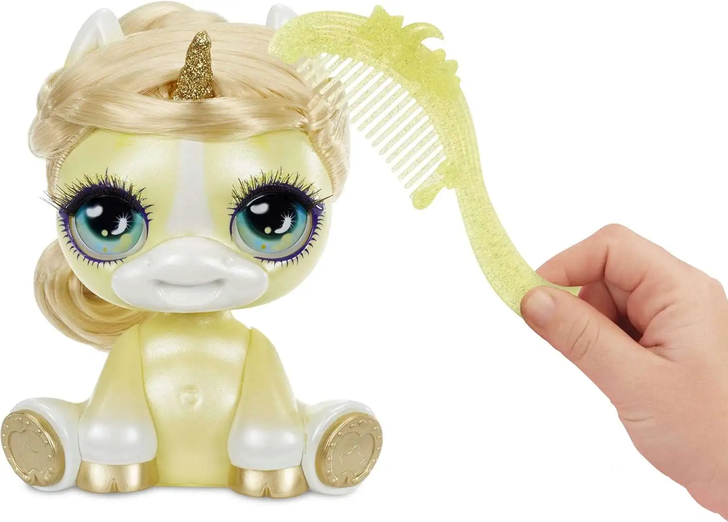 - BEAUTIFUL UNICORNS: Admire your unicorn's glittery metallic horn & hooves, long hair, and big eyes with long eyelashes!