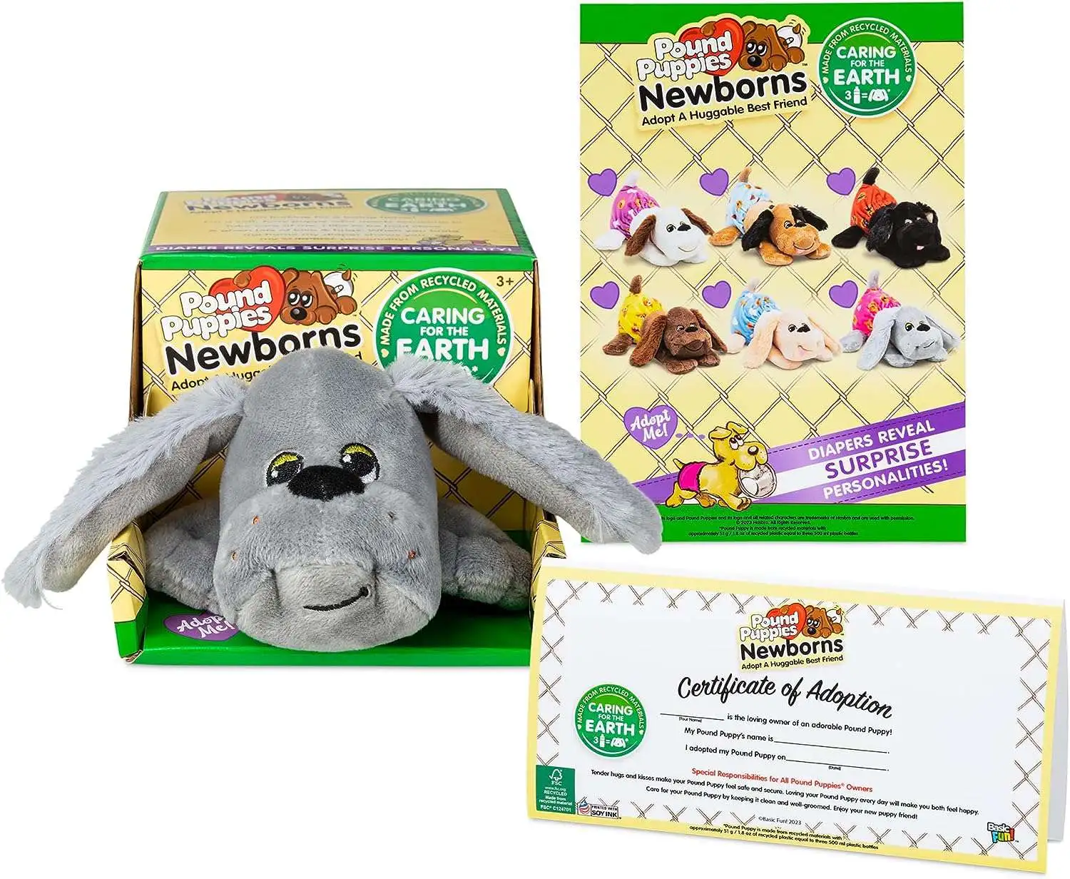 - SUSTAINABLE MATERIALS These new Pound Puppies Newborns plush are crafted from sustainable, recycled fabrics that are gentle on the environment while also being soft and snuggly to the touch.
