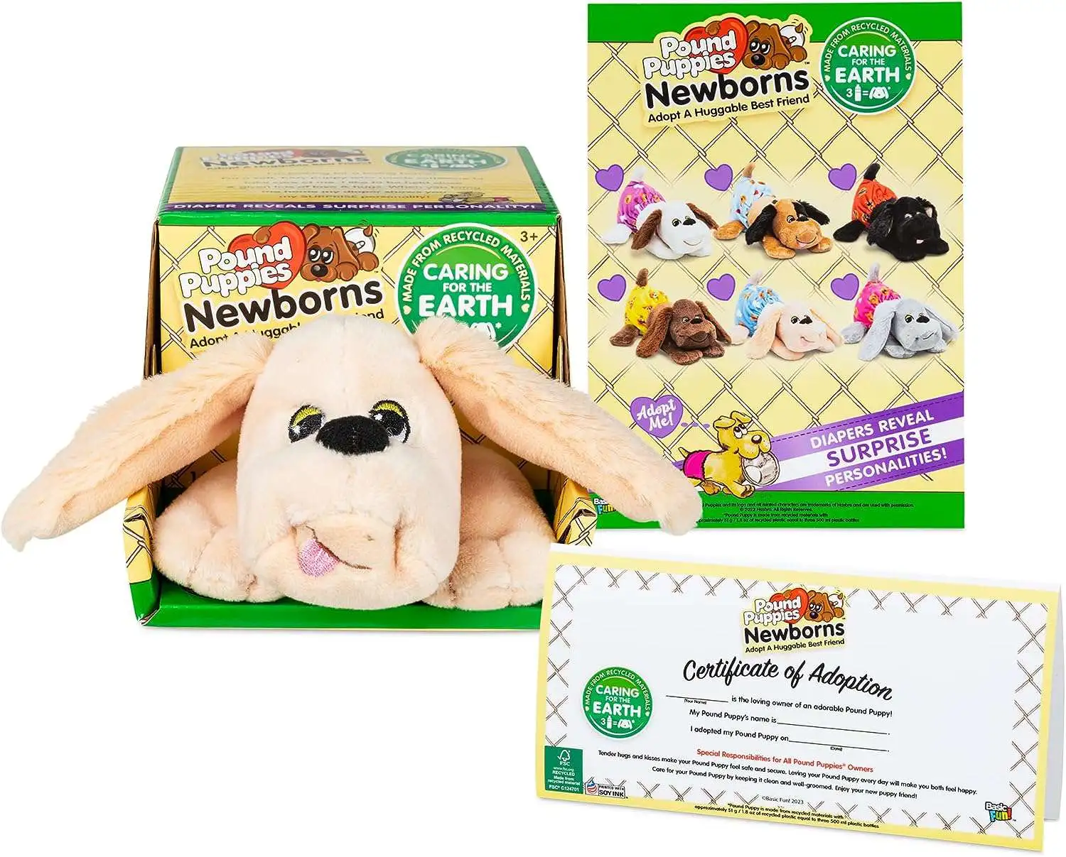 - SUSTAINABLE MATERIALS These new Pound Puppies Newborns plush are crafted from sustainable, recycled fabrics that are gentle on the environment while also being soft and snuggly to the touch