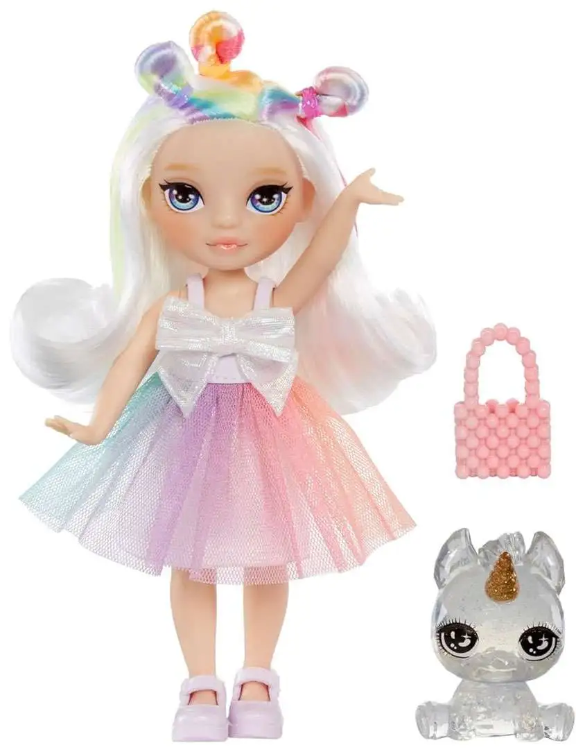 WHAT'S INCLUDED: 5.5 Small doll, removable outfit & shoes, purse and magical pet with horn.