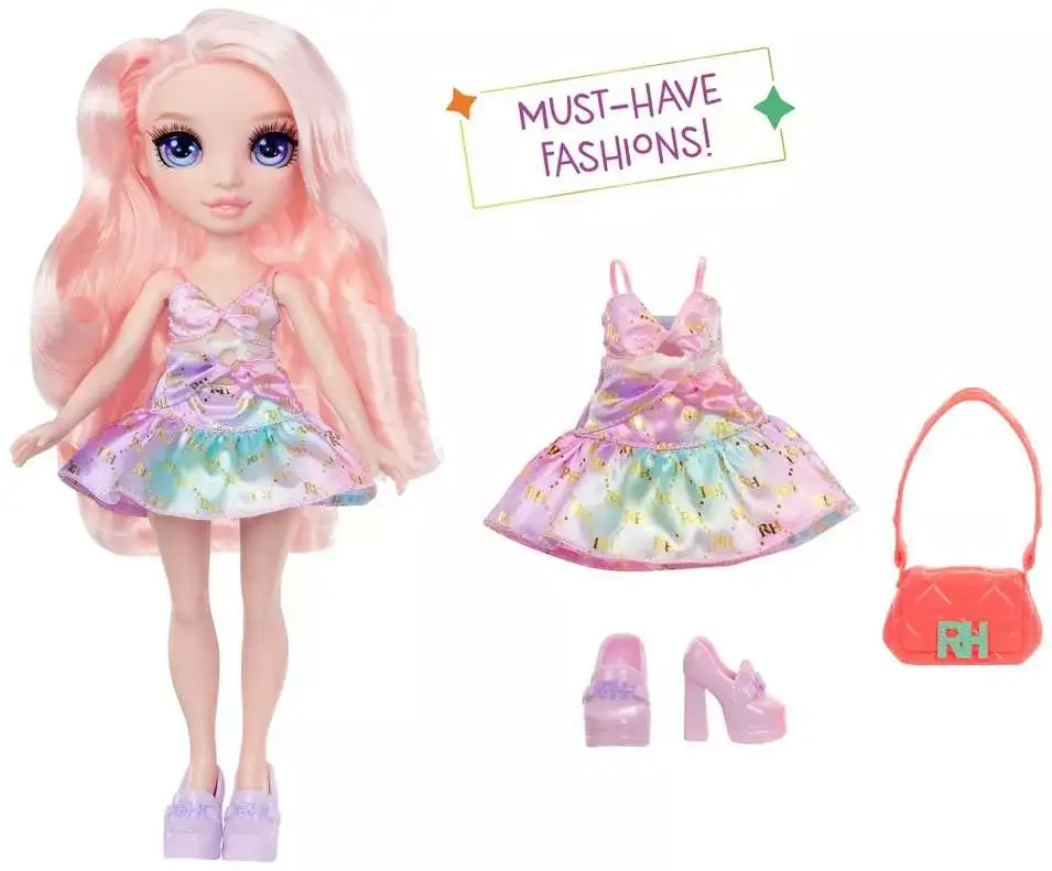 - UNIQUE STYLE: Everyone at Rainbow High has their own unique sense of style. Bella stands out in a chic pink dress, stylish loafers, and a vibrant pink handbag that perfectly completes her look.