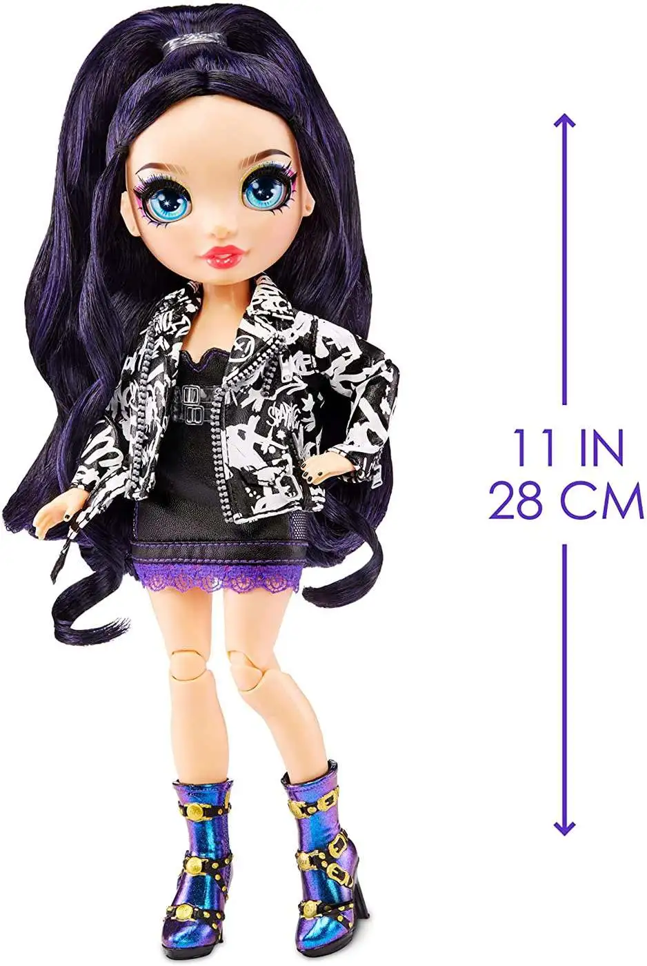 - GORGEOUS FEATURES: This playset includes an exclusive Doll. Ainsley has a unique design and is dressed in black, white, and iridescent tones from head to toe. She has gorgeous, detailed features in her fashion, beautiful curled hair, long real eye lashes, and glass eyes. Collect the Rainbow of all the gorgeous Shadow High fashion dolls.
