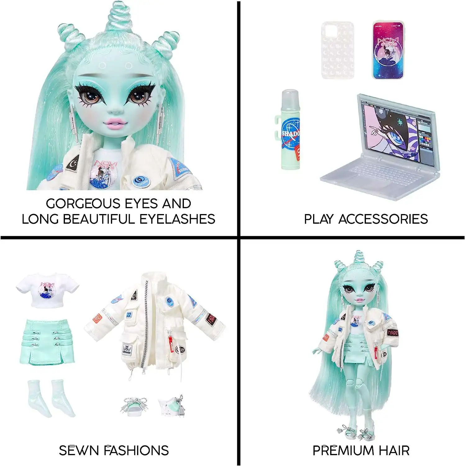 - CREATIVITY: At Shadow High, the students are creative, and express their passions through their focus. Zooey is a Fashion Designer. She comes with key essentials to make sure her designs and ideas are ready for the runway contest: laptop, adorable cellphone + case, and thermos. This playset will give kids endless joy and imaginative storytelling fun.
