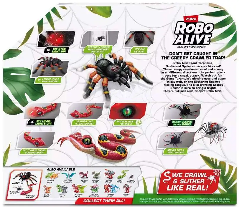 - Smart Movement Technology: Robo Alive smart movement technology gives these creepy crawlies teeth chattering realism! Watch them scutter along the floor to their prey and cross your fingers it's not you!