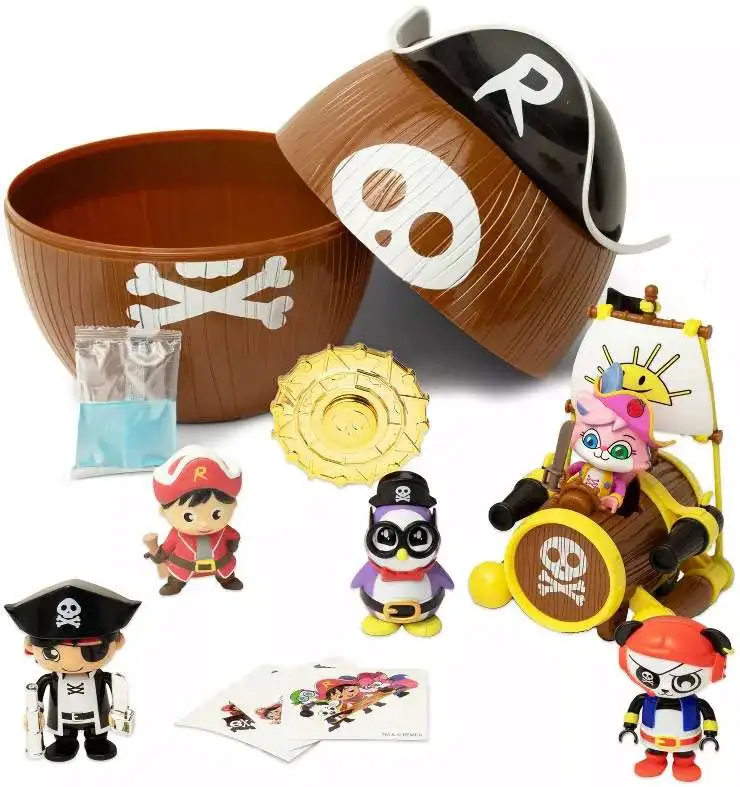 - EXCLUSIVE NEW RYAN'S WORLD TOYS: The all-new mystery egg is brimming with amazing pirate themed Ryan's World toys only found in this item! It includes mini figures, kid's toys, fidget toys and more! Egg Contents includes 4 mystery figures, Cap'n Ryan's Barrel Boat vehicle, a fidget spinner, putty, and 3 stickers!