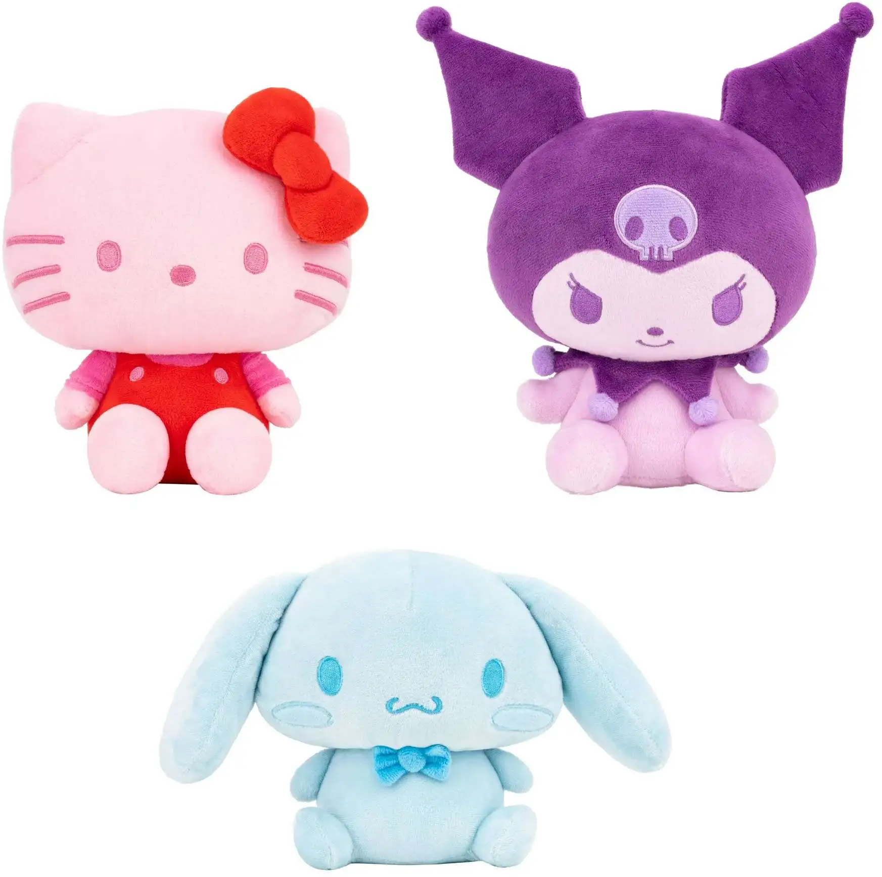 - Adorable 7-inch plush set featuring Hello Kitty, Kuromi, and Cinnamoroll characters.