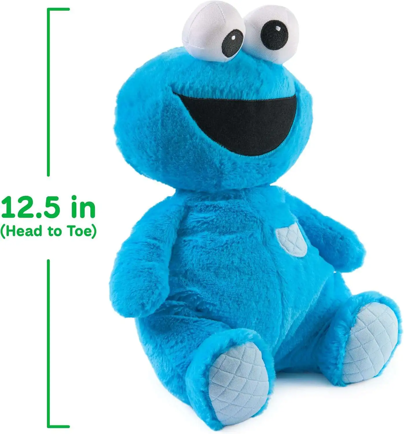 - MODERN COOKIE MONSTER PLUSH: This understuffed, huggably floppy Cookie Monster stuffed animal features soft blue plush, quilted accents on his feet, and show-accurate character details from Sesame Street, including his sweet, googly-eyed smile