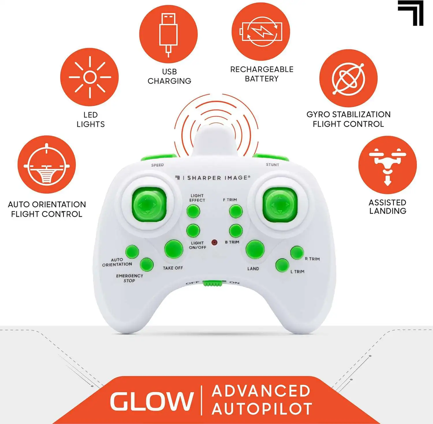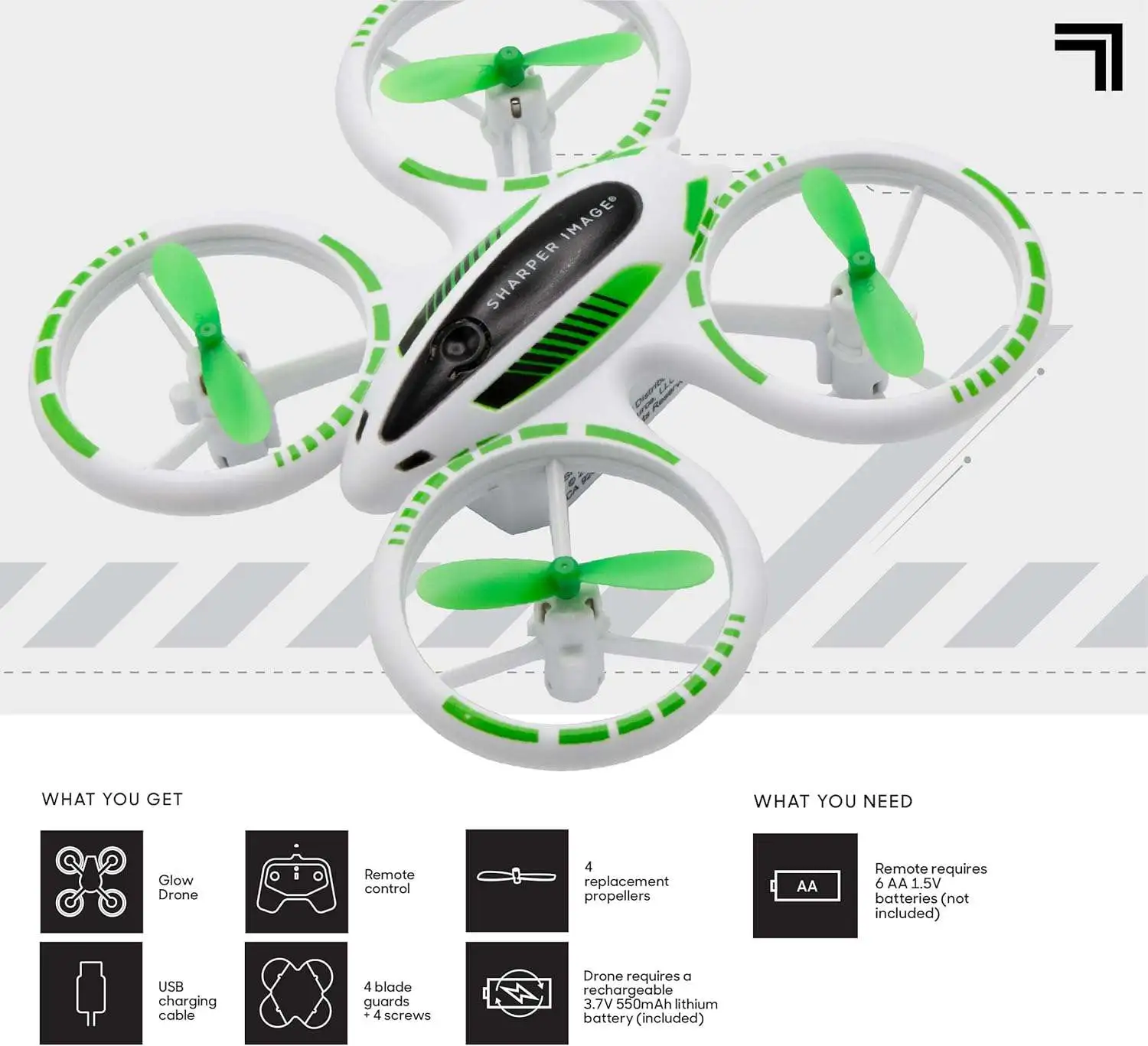 Sharper Image Glow Stunt Drone Rechargeable 2.4 GHZ LED Stunt Drone has successfully been added to your cart!