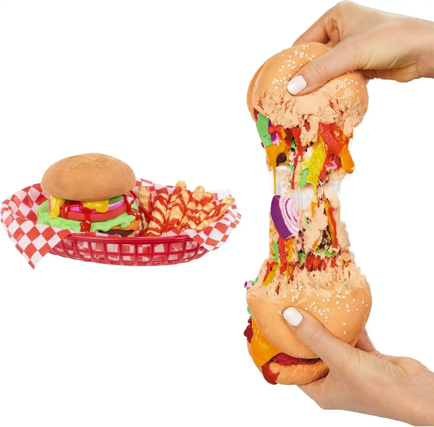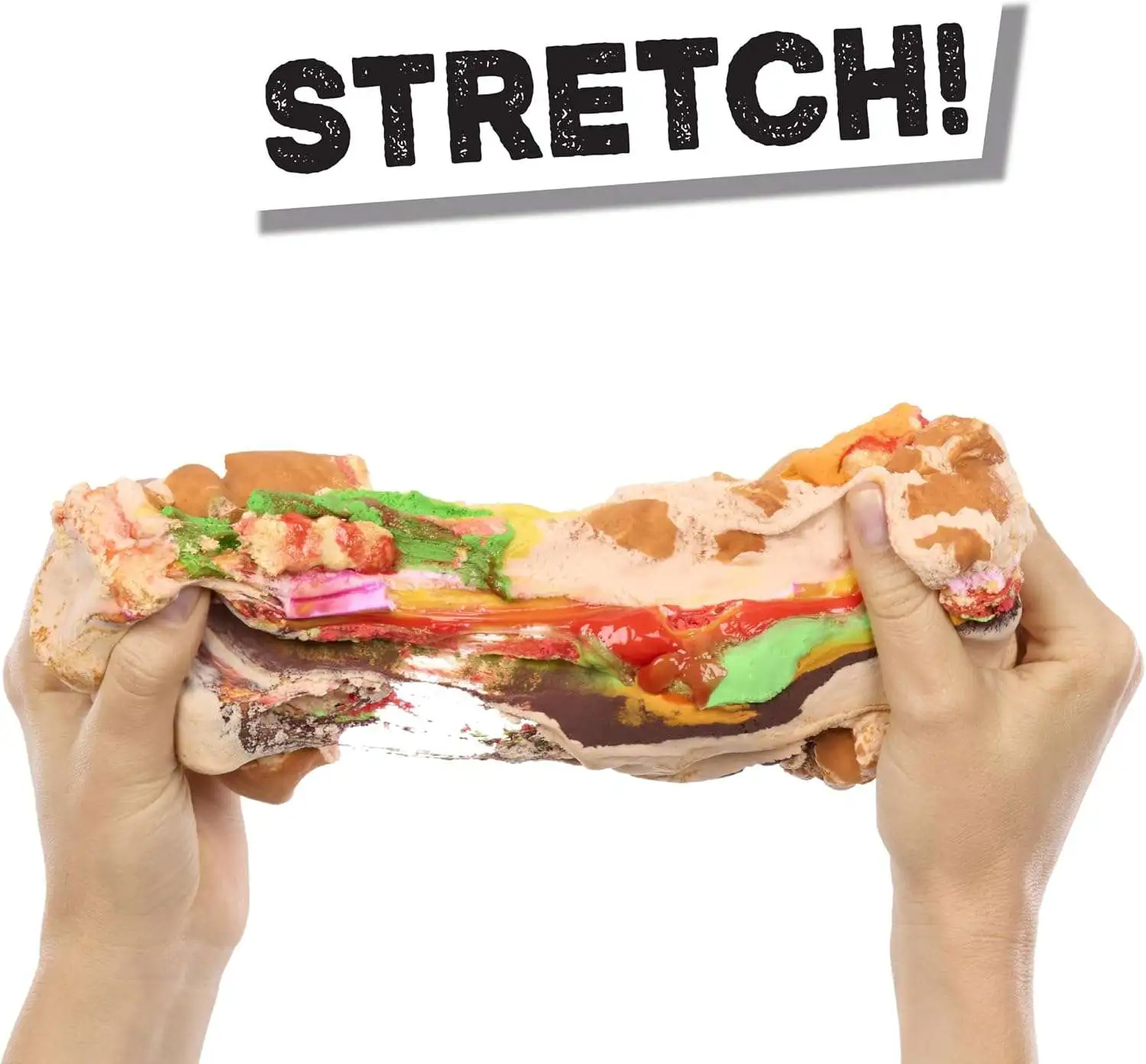 - Authentic Packaging: Get ready for the ultimate unboxing experience with hyper-realistic, food-inspired packaging that looks so convincing that the unwrapping is just as fun as the playtime! Rip open a bag of stretchable chips or pour a bowl of slimelicious cereal, complete with activities on the back of the box.