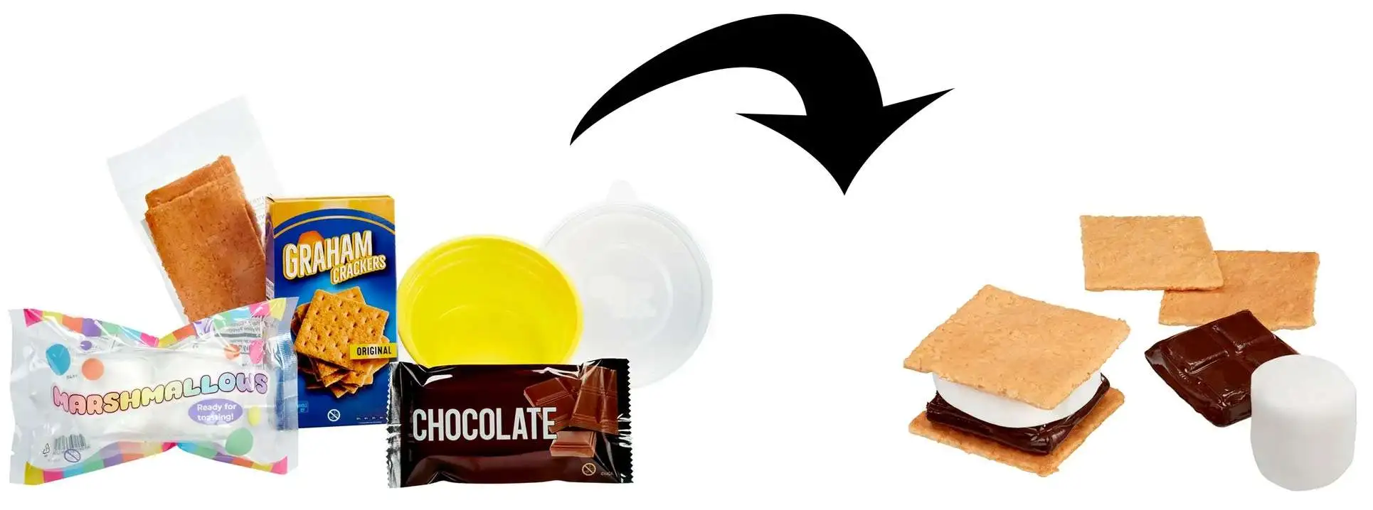- S'mores: S'more fun, please! Enjoy stretchable marshmallows between soft crackers and melty chocolate bars.