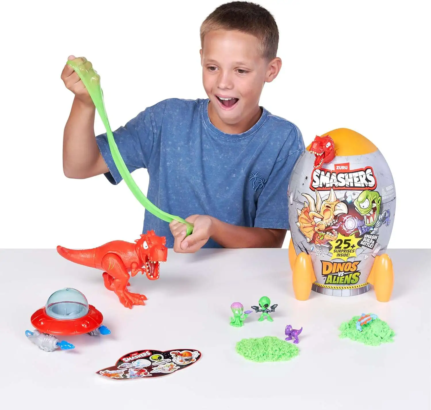 - SMASH & BUILD: Smash open your rocket and build your very own dino and alien.
