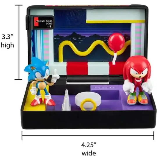 Includes 1.5-inch mini-figures of Sonic and Knuckles with peggable bases for placement in the scene.