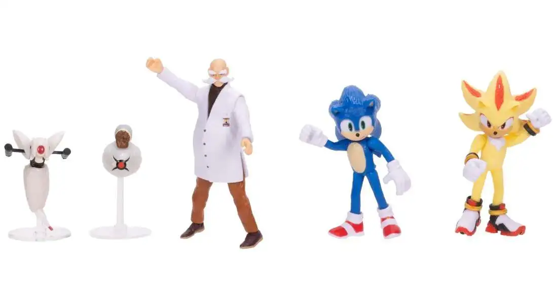 Sonic The Hedgehog 3 Movie Collection Sonic, Buzz Bomber, Gerald Robotnik, Super Shadow & Burrito Drone 2.5-Inch Mini Figure 5-Pack