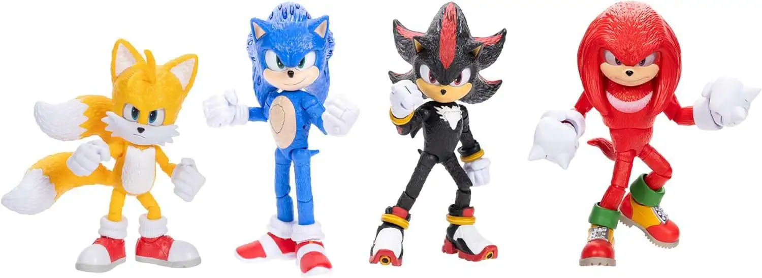 - Includes 4 figures: Tails, Sonic, Knuckles, and Shadow
