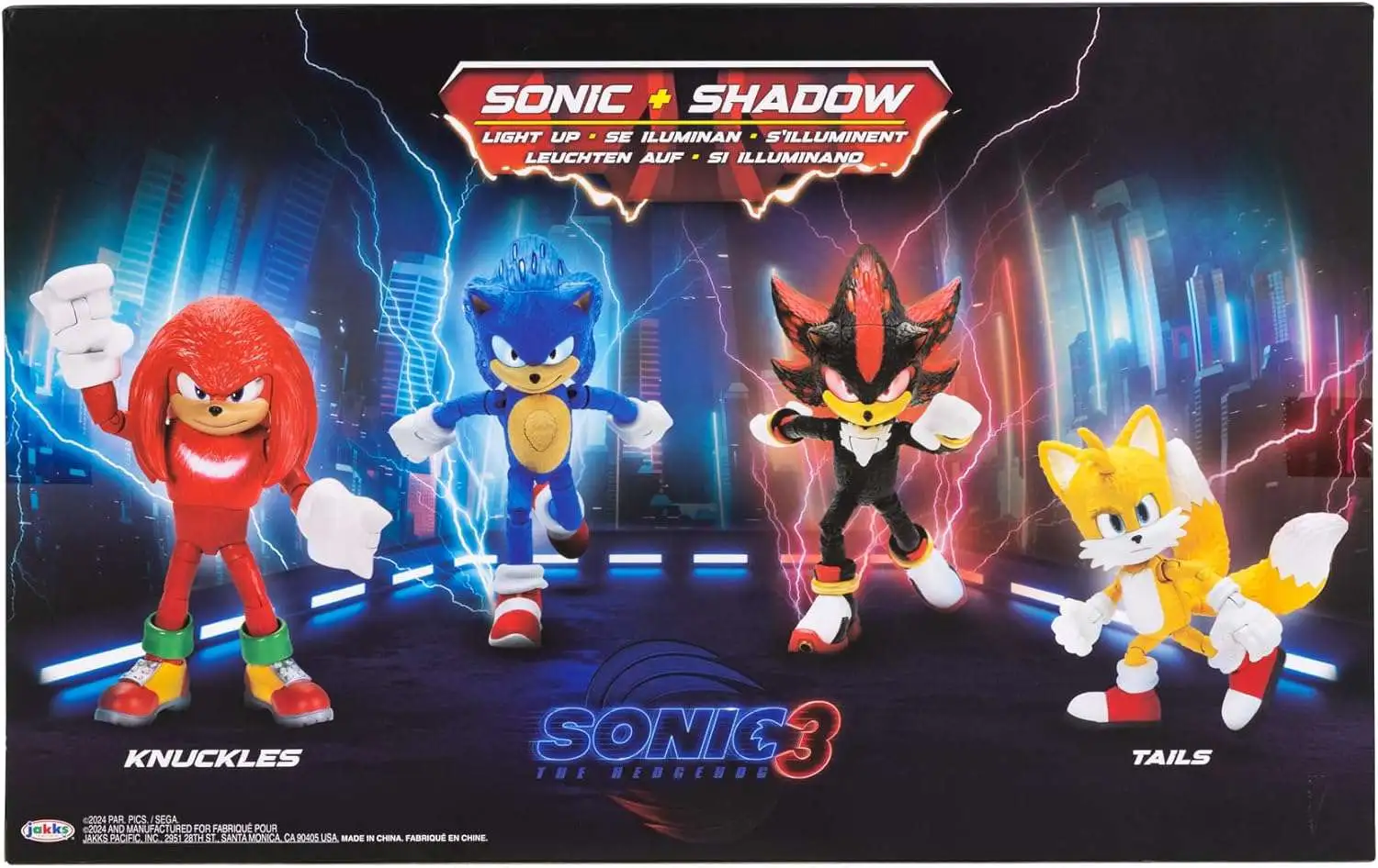 Sonic The Hedgehog 3 Light Up Sonic, Tails, Knuckles & Shadow Exclusive Action Figure 4-Pack