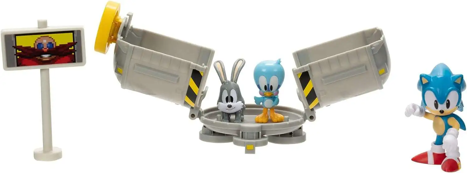 Included in the set is a 2.5" Classic Sonic figure, Flicky and Pocky features, a Goal Post, and Capsule.