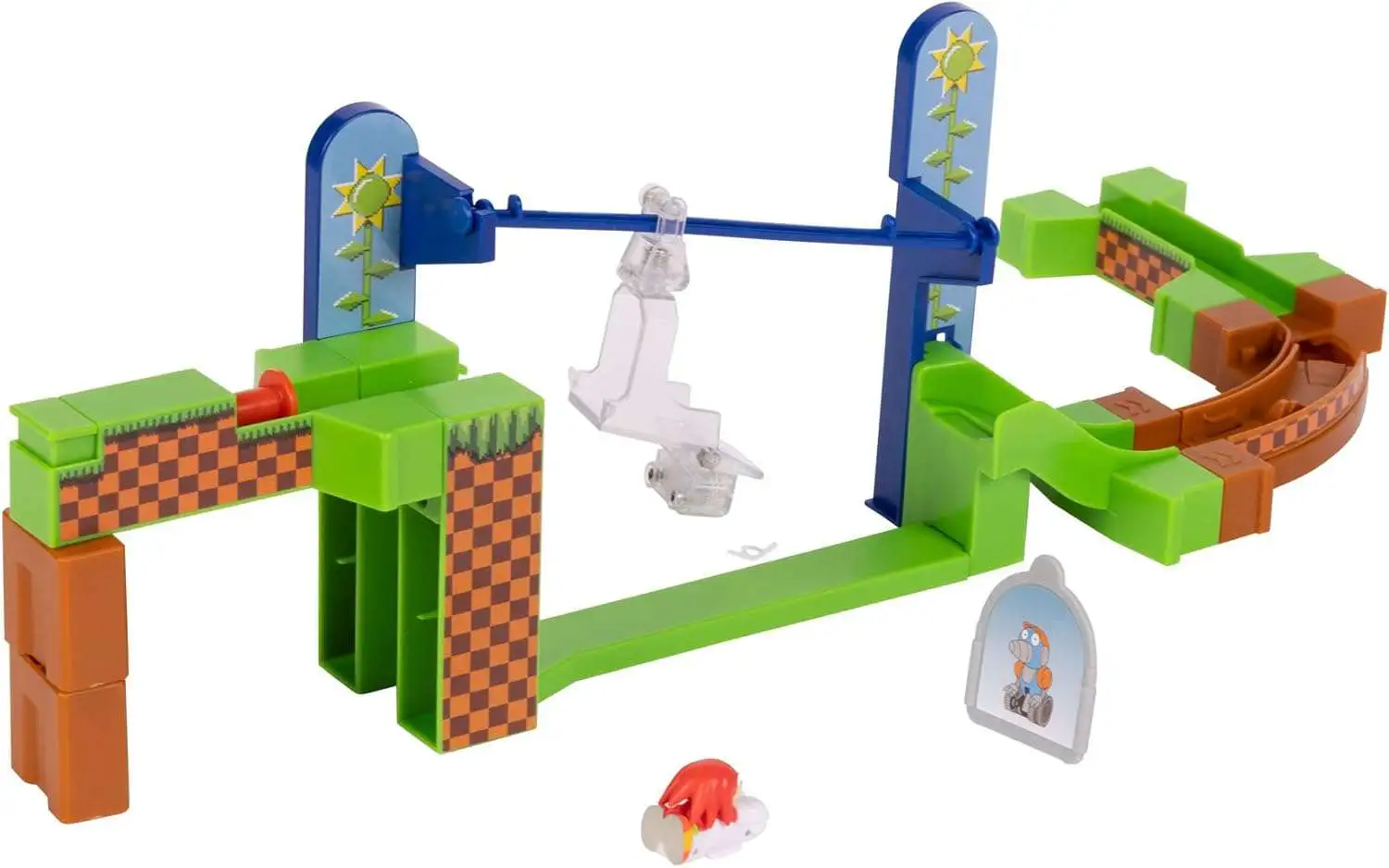 - Features an interactive launching mechanism to send Knuckles flying across Green Hill Zone.