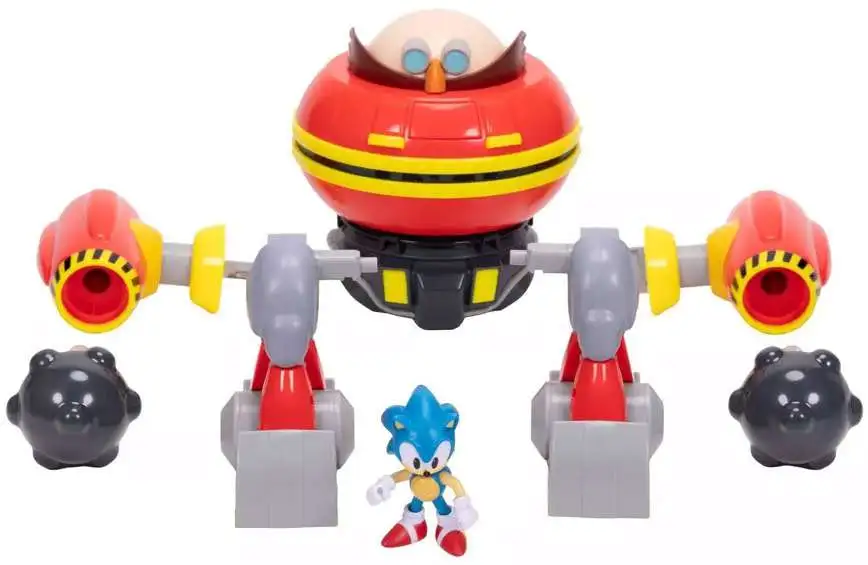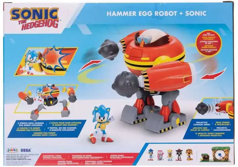 - Includes a fully articulated 2.5" Sonic figure and 9" Hammer Egg Robot for classic hero vs. villain play