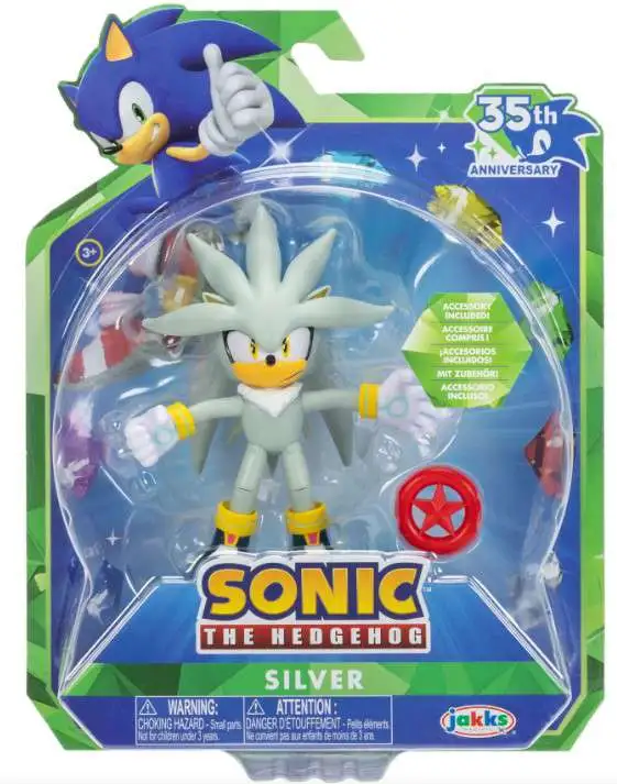 - 4-inch Silver the Hedgehog action figure with detailed design and articulation for dynamic poses.